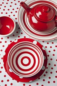 Červený ubrus. Nebo bílý, světle modrý, s červenými kytičkami, puntíky. Červené prostírání...
