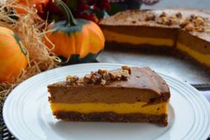 Dýňové pyré, zakysanou smetanu, oba tvarohy, vejce a pudinkový prášek vymícháme v hladký krém. Ochutíme špetkou skořice a osladíme agávovým sirupem.