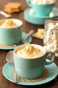 Kopeček šlehačky nebo napěněného mléka je dokonalým závěrečným zdobením čokolády. Nahoru můžete nasypat opražené oříšky, rozdrcené sušenky nebo nasekanou čokoládu či kakao.