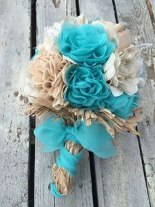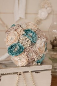 Netradiční látkové a brožové svatební kytice