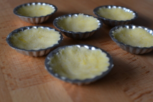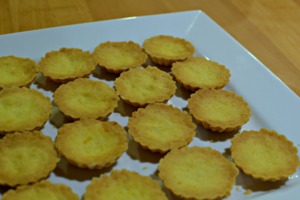 Poté těsto vytáhněte, oddělujte z něj kousky a ty namačkejte do formiček na košíčky. Pečte v troubě vyhřáté na 150 °C, zhruba půl hodiny. Košíčky lehce zezlátnou.