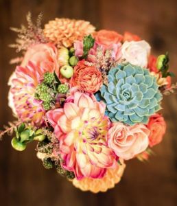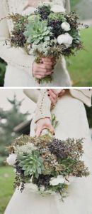 Naprostým hitem pro svatby všech ročních období jsou sukulenty – dají se vytvořit kytky samostatně sukulentové – např. na zelené svatby, ale také můžeme sukulenty skvěle kombinovat prakticky s jakýmikoliv květinami světlých barev.