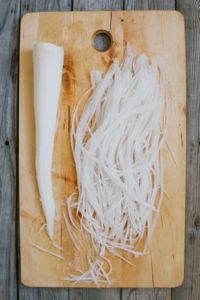 Oloupejte a odkrojte konce. Překrojte na polovinu nebo menší kousky, aby se vešla do spiralizéru.