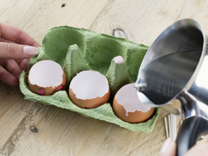 Nalijte rozpuštěný parafín do připravených skořápek.