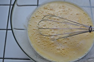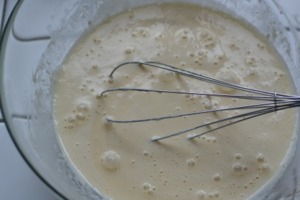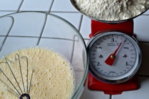 Přidáme hladkou mouku. Je dobré mouku přisypávat postupně, a šlehat metličkou, aby nevznikly hrudky.