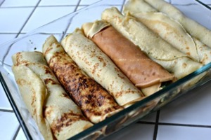 Takto naplněné palačinky naskládáme jednu vedle druhé do zapékací misky.