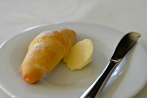 Ještě než si začnete užívat zvěřinové speciality, můžete si pochutnat na křupavém domácím pečivu s lahodným máslem. My jsme dostali teplou banketku, lepší jsem snad ještě nejedla.