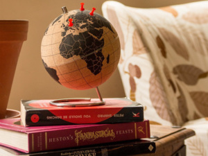 19. Globus místo nástěnky – zapíchni špendlík a jeď.