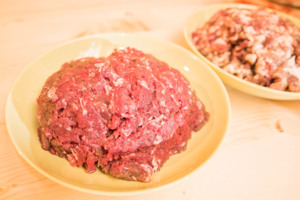 Než budeme plnit klobásy, nachystáme si jemně mleté hovězí maso z krku, přidáme k naloženému vepřovému masu. Hovězího masa nedáváme víc. Mele se najemno aby směs lépe pojila. Odvážíme zbytek koření a přidáme ke směsi. Kmín dáváme až v závěrečné fázi, aby maso nekvasilo.