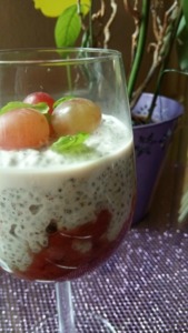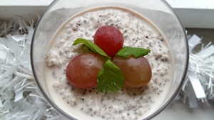 Do čerstvě vyrobeného mléka nasypeme dvě lžíce chia semínek a necháme dvě hodiny odstát, dokud nevznikne hustý pudink.