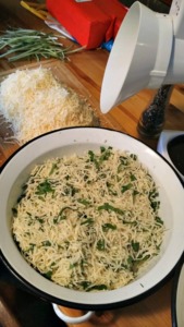 Když sýr nastrouháte, rychleji se rozpustí a lépe se dochutí. Strouhat větší množství sýra je otrava. Doporučujeme proto nažhavit robota, nasadit nástavce a nastrouhat. Stačí nahrubo. Jak vidíte na fotce. My jsme použili značku ETA Gratus MAXIPASTA.