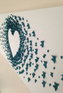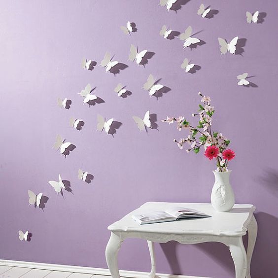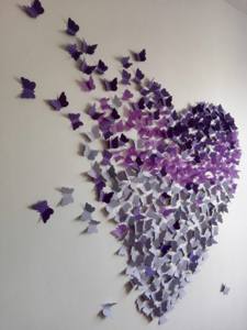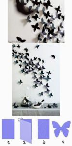 Hotové motýlky přilepíte na zeď pomocí oboustraně lepících čtverečků nebo lepících gelových kapek. Můžete lepit jen tak náhodně nebo vytvářet obrazce.