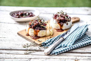 Hermelín se švestkovou omáčkou, rozinkami a tymiánem