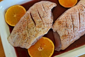 Kachní prsa na červeném víně s pomeranči