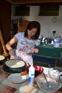 Naštěstí jsme měli příjemný plán. Zastavit se v Pensionu Školka na šulánky s mákem. Také každoroční tradice. Tentokrát jsme ochutnávku rozšířili o výborné palačinky s borůvkovým džemem. Měla jsem chuť na místní držkovku, protože ta je skvělá. Jenže po zabijačkové ochutnávce jsme byli všichni celkem přejedení.