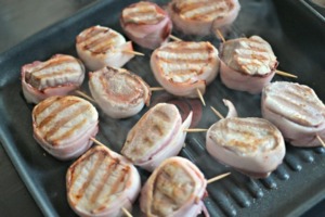 Kolem každého špalíčku omotejte plátek anglické slaniny, který zajistíte zapíchnutým párátkem.