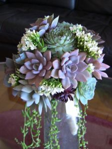 Naprostým hitem pro svatby všech ročních období jsou sukulenty – dají se vytvořit kytky samostatně sukulentové – např. na zelené svatby, ale také můžeme sukulenty skvěle kombinovat prakticky s jakýmikoliv květinami světlých barev.