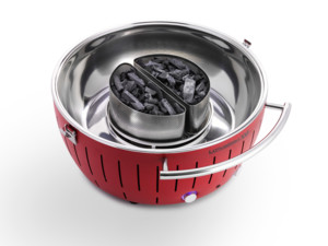 Nový LotuGrill XXL je standardně dodáván s pevným, transportním vozíkem, který tak umožňuje pohodlné grilování kdekoliv a bude dostupný ve dvou barevných variantách – Antracitová šedá a Planoucí červená.