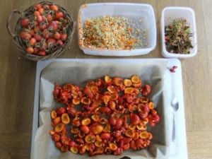 Když je toho 750 g, šípky několikrát vyperu ve vodě, aby se zbavili nechtěných jemných chloupků, které by nás přikonzumaci lechtaly v krku.