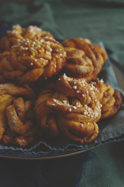 Ze surovin na těsto zpracujeme krásné hladké těsto a necháme minimálně hodinku kynout. Pak rozdělíme na dva kusy a každý rozválíme na obdélník, který potřeme rozpuštěným máslem a bohatě posypeme skořicovým cukrem, zarolujeme a nakrájíme špalíčky, uprostřed každého špalíčku protlačíme pomoučenou tupou stranou nože řez, ale pozor „nepřekrojit“ - tím nám vnitřky špalíčku ze stran povylezou. Takto vytvořený tvar přeneseme na plech (vystlaný pečícím papírem) a necháme 20 minut nakynout.