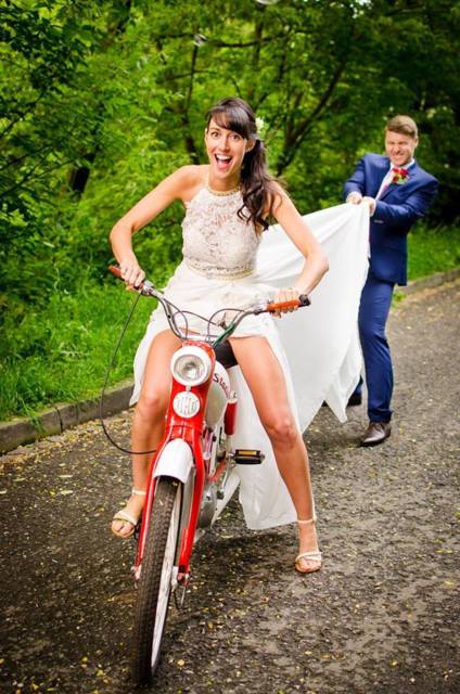Nejvtipnější z mé předposlední říjnové svatby, kdy nevěsta zaleze s ženichem za strom, ženich jí drží šaty a nevěsta čůrá (smích). Málem jsem při těchto dvou akcích umřela smíchy. Další scenérie, kdy jsme šli s novomanželi po cestě, na které uprostřed byl kobylinec :D Nevěsta nad něj čapla, jako že vykonává potřebu (smích).