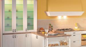 Ve skříňkách okolo varného centra mějte talíře, mísy, misky. Vše co potřebujete při podávání jídla na stůl. Potřebujte zde ale hlavně skříňku na hrnce, pánvičky, plechy do trouby, zapékací nádoby, poklice.