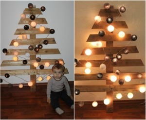 Hotový stromeček venku, z výsledku jsme měli velkou radost. Já jsem desky nechala přírodní, můžete si je samozřejmě natřít nějakou barvou.