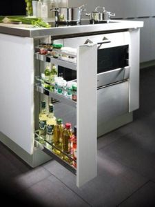 Máte ve spodní části kuchyňské linky úzký prostor, který nevíte na co využít? Nechejte si do něj umístit úzký plnovýsuv na oleje, octy, sirupy. Ideálně poblíž sporáku a dřezu.