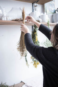 První práce vás čeká s mírným předstihem. Květiny, které budete chtít vložit do lahvičky, musí být suché. Natrhejte je alespoň týden předem a nechejte zavěšené stonky nahoru uschnout.
