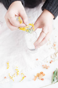 Promíchejte řádně všechny tři složky, důkladným protřepáním. Do lahvičky opatrně vtlačte zvolenou sušenou květinku. A uzavřete.