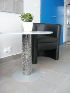 Pružinky jsem také použila při tvorbě konferenčního stolku pro hosty. V plexi trubici, která tvoří nohu stolku je nasypáno tisíce pružinek této firmy.